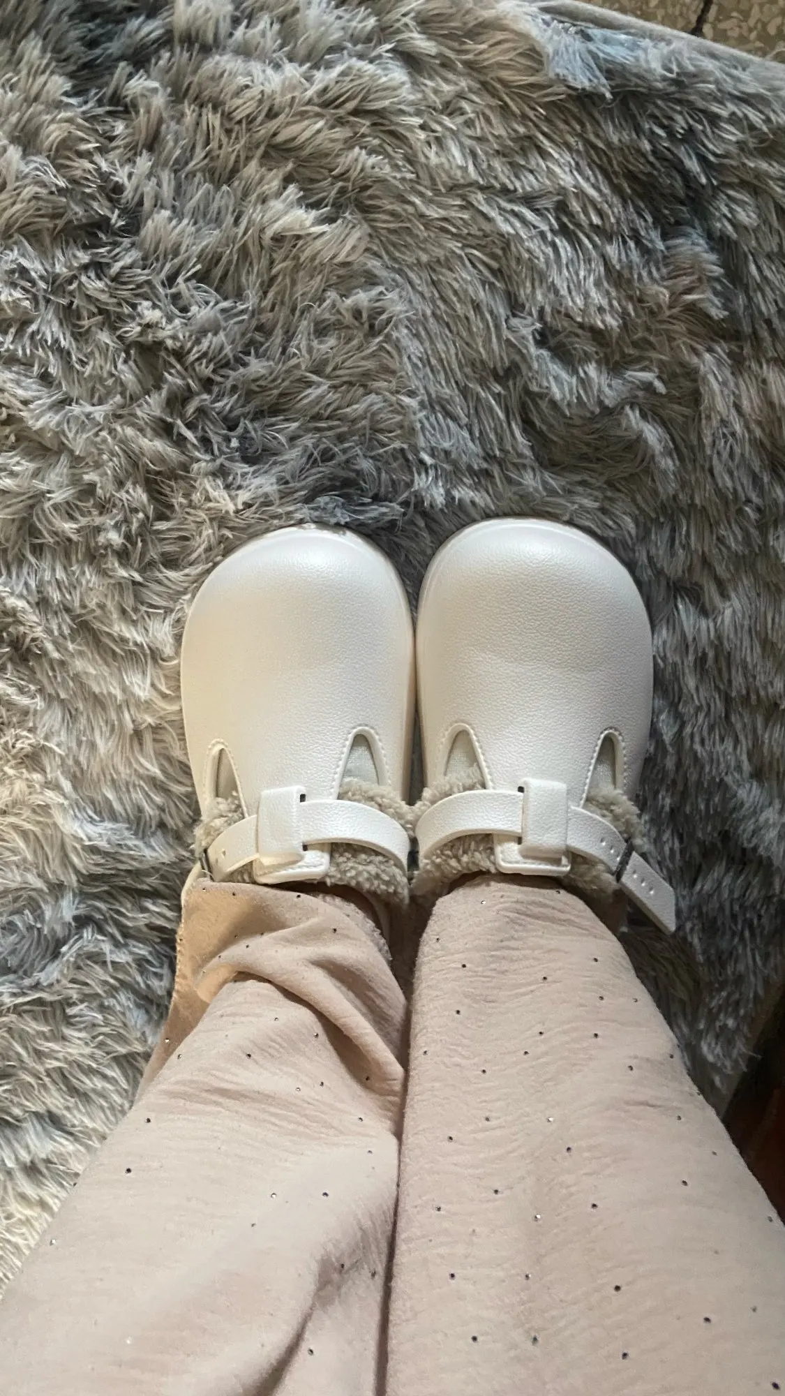 Stay warm and stylish this winter with these waterproof furry mules. Featuring soft plush lining and insole, a thick EVA outsole, and a chic metal buckle, these slippers provide comfort, durability, and slip-resistant support for indoor wear.